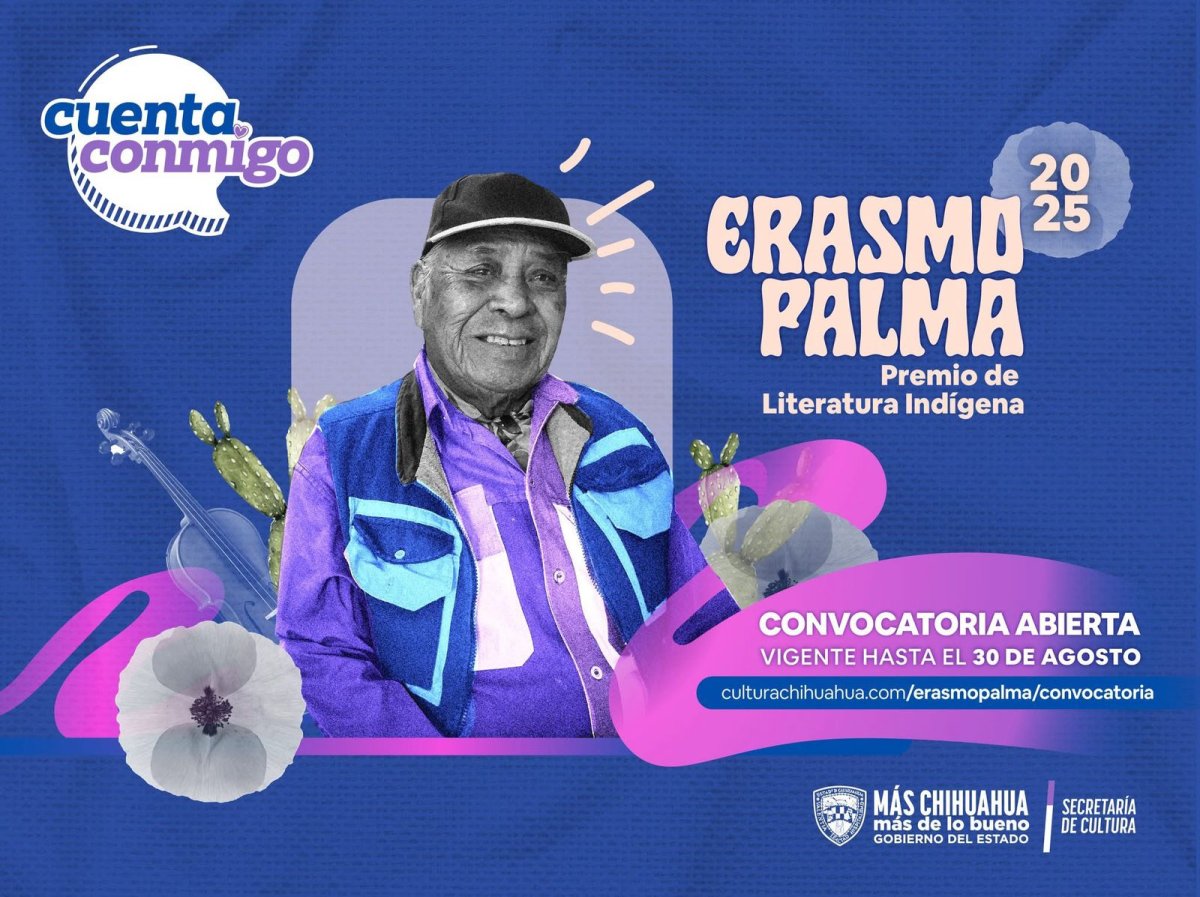 La Secretaría de Cultura, la Unidad Regional Chihuahua de Culturas Populares, Indígenas y Urbanas, y la Comisión para la Salvaguarda del Patrimonio Cultural y Artístico de la Obra de Erasmo Palma, convocan a participar en el Premio de Literatura Indígena “Erasmo Palma” 2025.