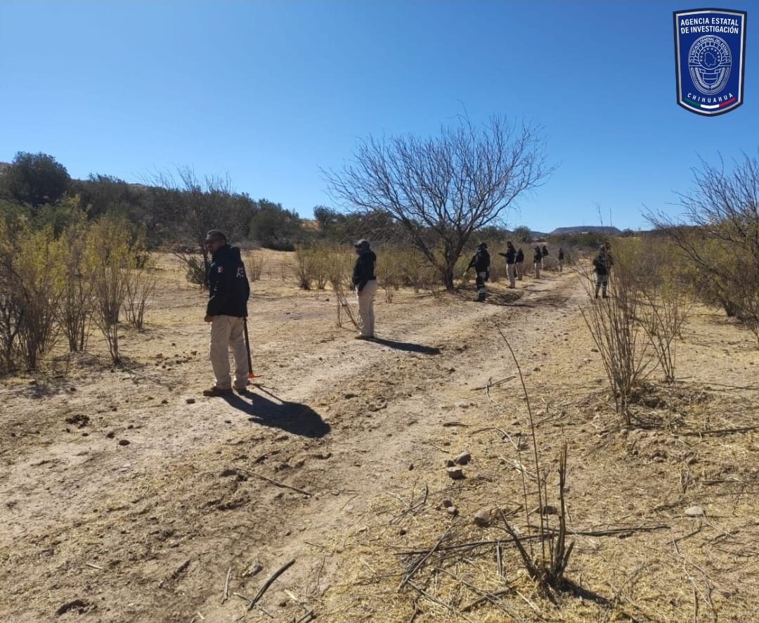 Desde temprana hora elementos de la Agencia Estatal de Investigación, en coordinación con e1 Ministerio Publico, peritos en criminalística de campo y elementos de la Guardia Nacional, recorrieron de manera pedestre tramos de la carretera que conduce de Nonoava a Guachochi y caminos vecinales, cubriendo una superficie de 7 mil metros cuadrados.