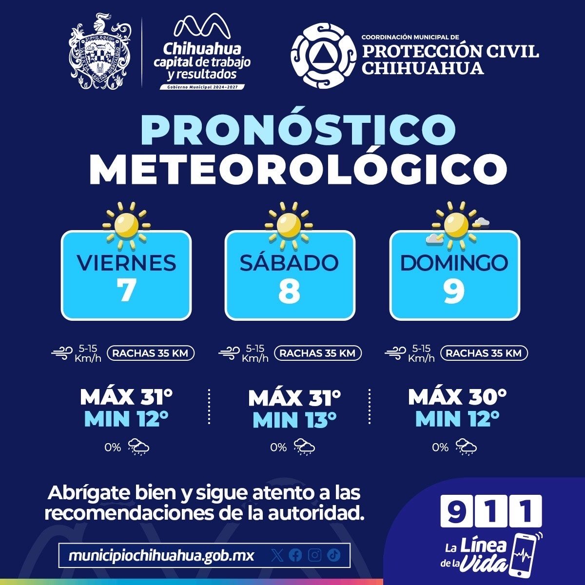 La Coordinación Municipal de Protección Civil, informa que este fin de semana, del 7 al 9 febrero, se prevén temperaturas cálidas con máximas de 31°C y mínimas de 12°C.