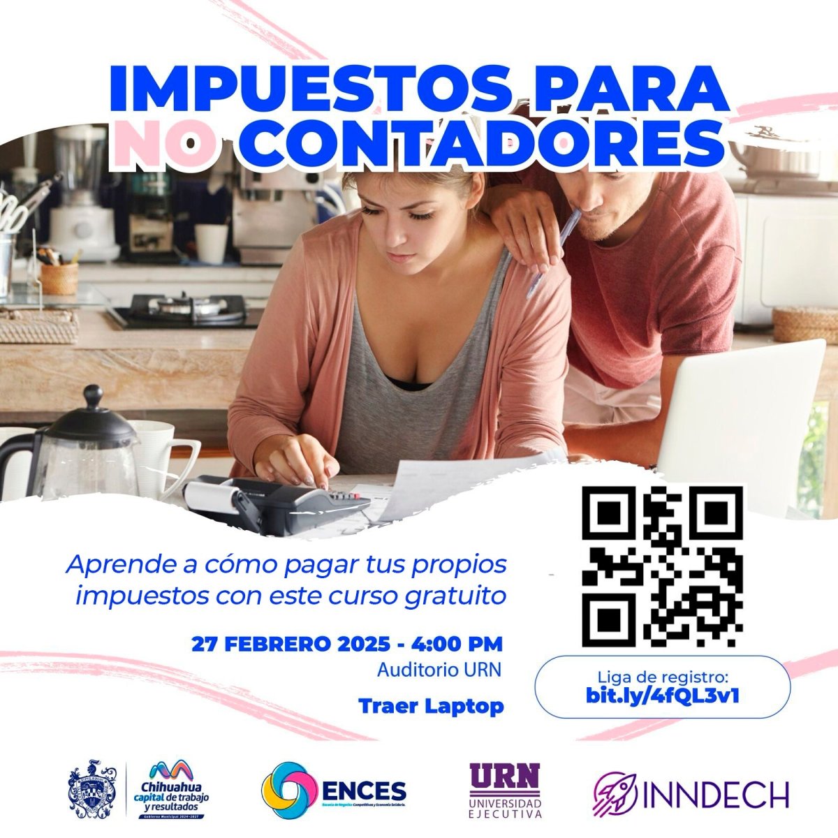 El Gobierno Municipal, invita a la ciudadanía a inscribirse al próximo curso gratuito “Impuestos para no Contadores”, organizado por la Escuela de Negocios y Economía Solidaria (ENCES) y en coordinación con INNDECH.