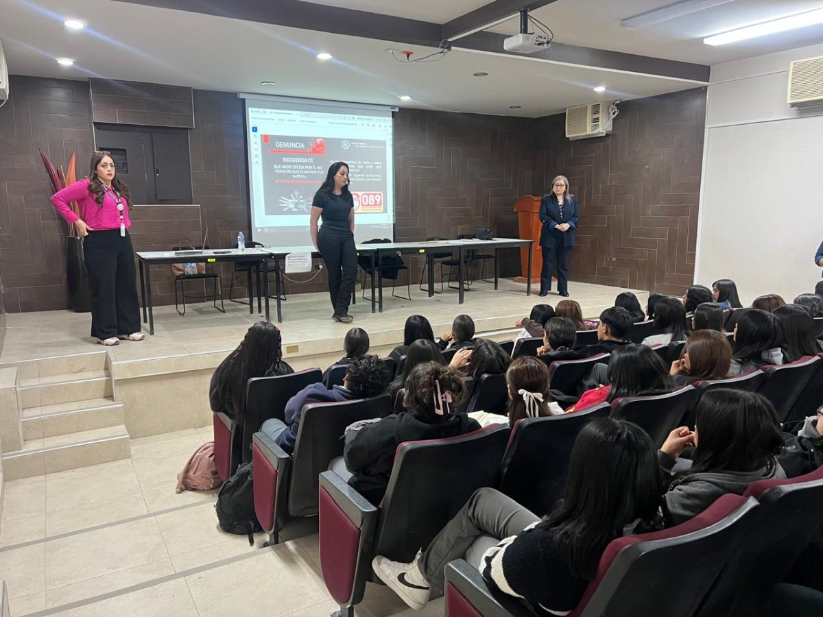 Con la finalidad de crear conciencia entre la comunidad estudiantil del CBTIS 269, acerca de los delitos relacionados con la trata de personas, la Fiscalía General del Estado brindó pláticas a 700 estudiantes del plantel ubicado en la colonia Estrella del Poniente, en Ciudad Juárez.