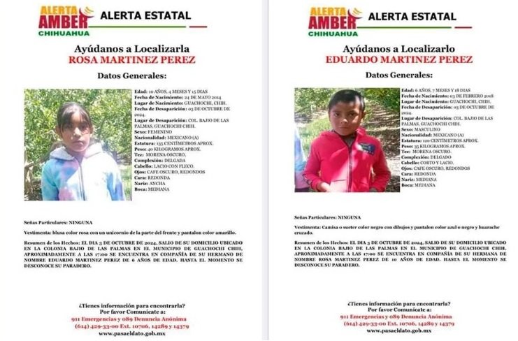 Los menores identificados como Rosa y Eduardo Martínez Pérez, de 10 y 6 años de edad, respectivamente habrían desaparecido desde el pasado mes de octubre del 2024, sin embargo, trascendió su localización este sábado.