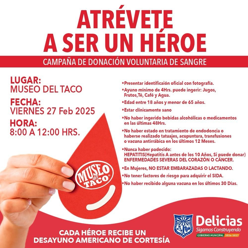El Gobierno Municipal de Delicias hace un llamado a la población a sumarse a esta noble causa y convertirse en héroes reales, aportando su granito de arena para salvar vidas. La campaña representa una oportunidad única para quienes deseen hacer una diferencia en la vida de otras personas mediante la donación voluntaria de sangre.