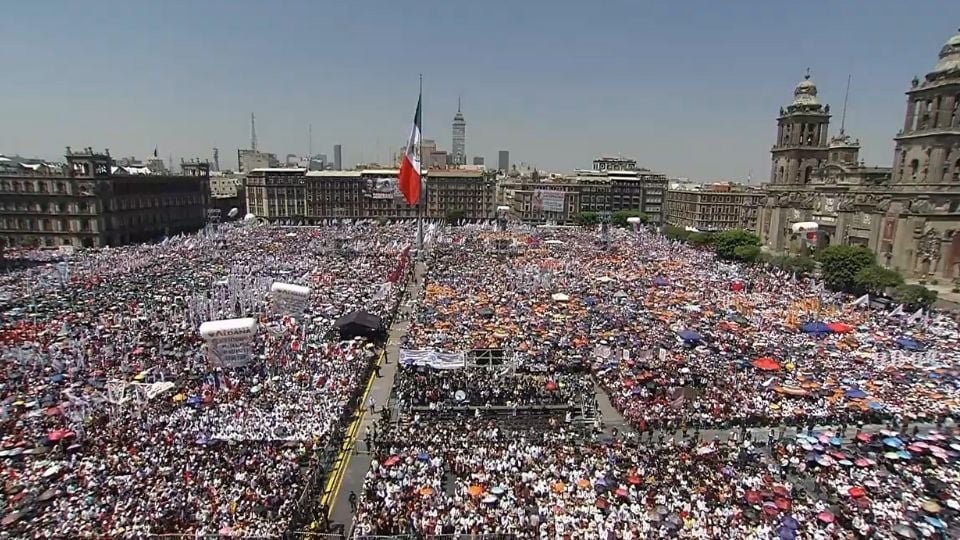 La Plaza de la Constitución ya se encuentra prácticamente llena de simpatizantes de Morena.