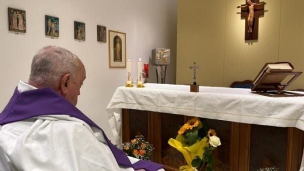 Esta mañana el Papa Francisco celebró la Santa Misa en la capilla del apartamento del décimo piso del Policlínico Gemelli", publicó El Vaticano.