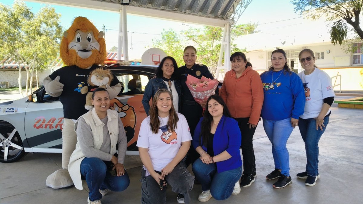“Los agentes estuvieron asistiendo a nuestra escuela por varias semanas en donde nos impartían una sesión por semana, trabajando con las y los niños acerca de la no violencia, las adicciones, cómo cuidarse en sus hogares, entre otros tópicos. Nos trajeron playeras para concluir el curso, el auto oficial para que se subieran y la mascota DARE”, expresó la educadora, María Lourdes Frescas Tarango.