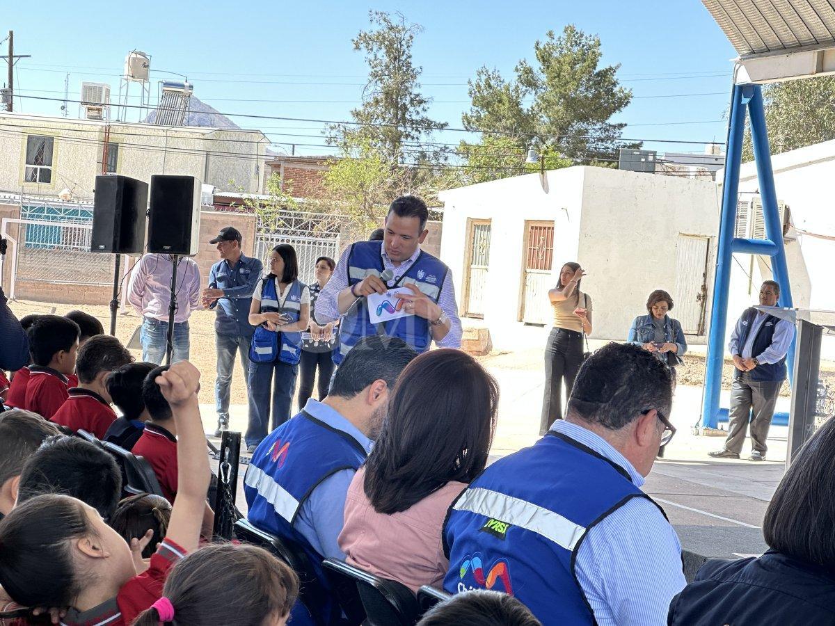 La inauguración de la cancha de futbol rápido que se construyó a través del programa Infraestructura Educativa en alianza con el Gobierno del Estado y FECHAC, programa que busca mejorar los espacios educativos públicos de Nivel Básico y Medio Superior, con acciones de mantenimiento, ampliación, rehabilitación y/o construcción de su infraestructura, con el fin de generar condiciones óptimas para el aprendizaje y aprovechamiento de sus estudiantes.