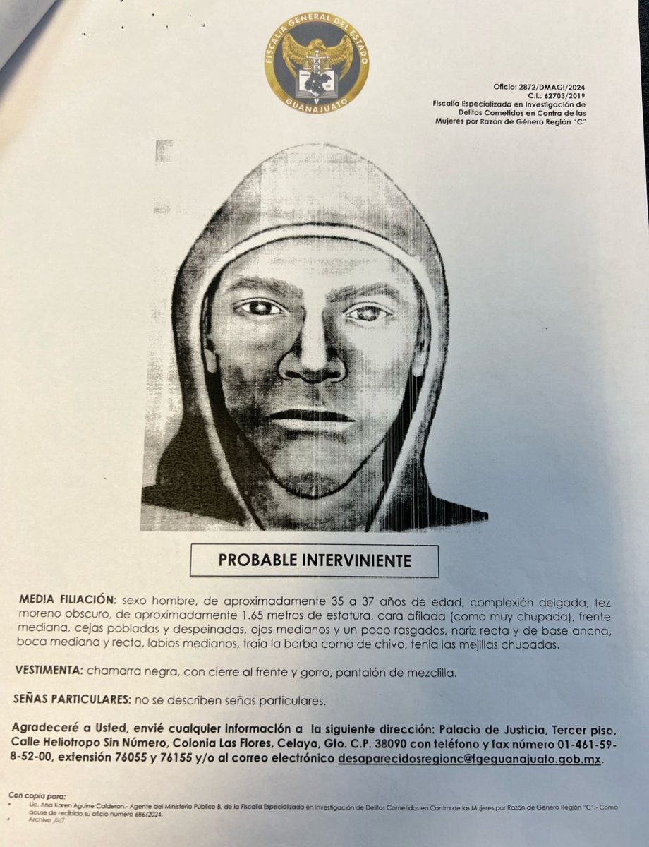 En caso de contar con información o reconocerlo, se sugiere llamar a emergencias 911, o al teléfono 614429-33-00 extensión 10703 en la Fiscalía Especializada en Atención a Mujeres Víctimas del Delito por Razones de Género y a la Familia en Chihuahua o al número 01 461 5985200 extensión 76055 y 76155 a la Fiscalía de Guanajuato.
