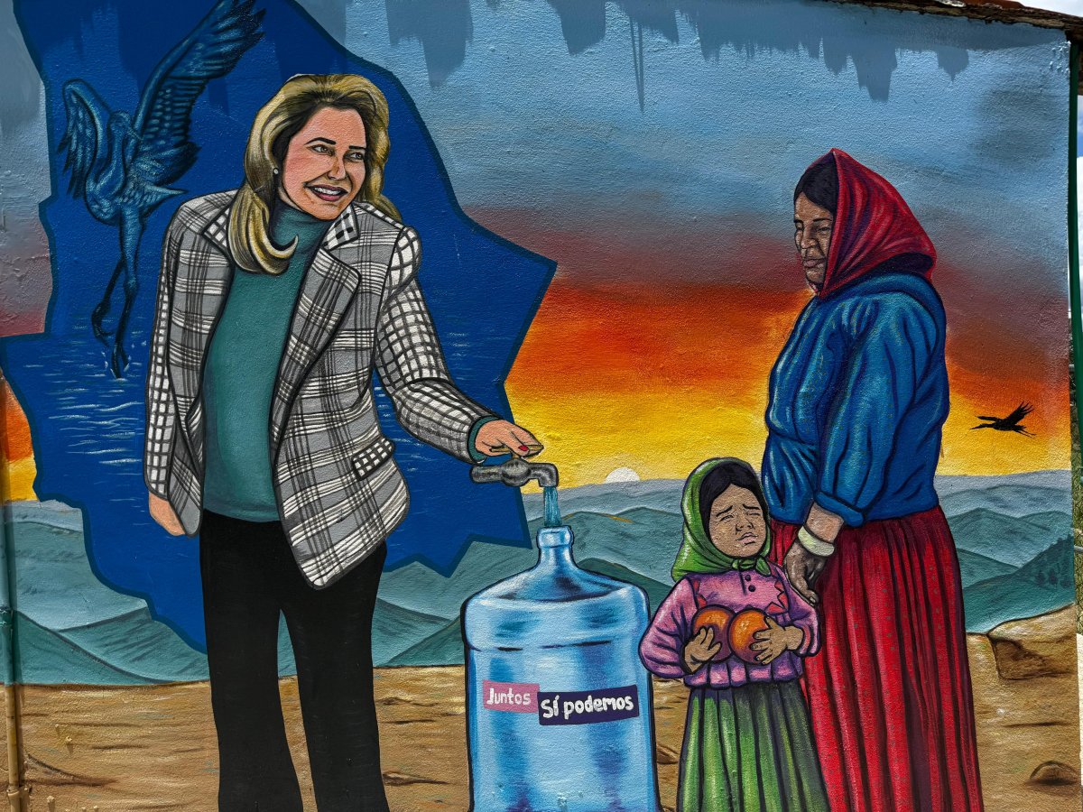 Desde Guachochi, reportan la imagen de un mural en la Universidad Tecnológica de esa localidad, en la que aparece la gobernadora Maru Campos, con el tema del suministro de agua potable.
