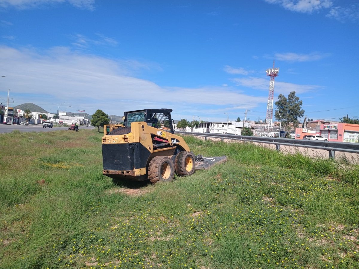 Además, continúan labores de corte con un mini cargador adaptado con desbrozadora, esto para agilizar las acciones de limpieza, en donde hasta el momento se tiene atendido poco más de 6 mil 500 metros cuadrados sobre la vialidad Nogales entre Tecnológico y Sosa Vera.