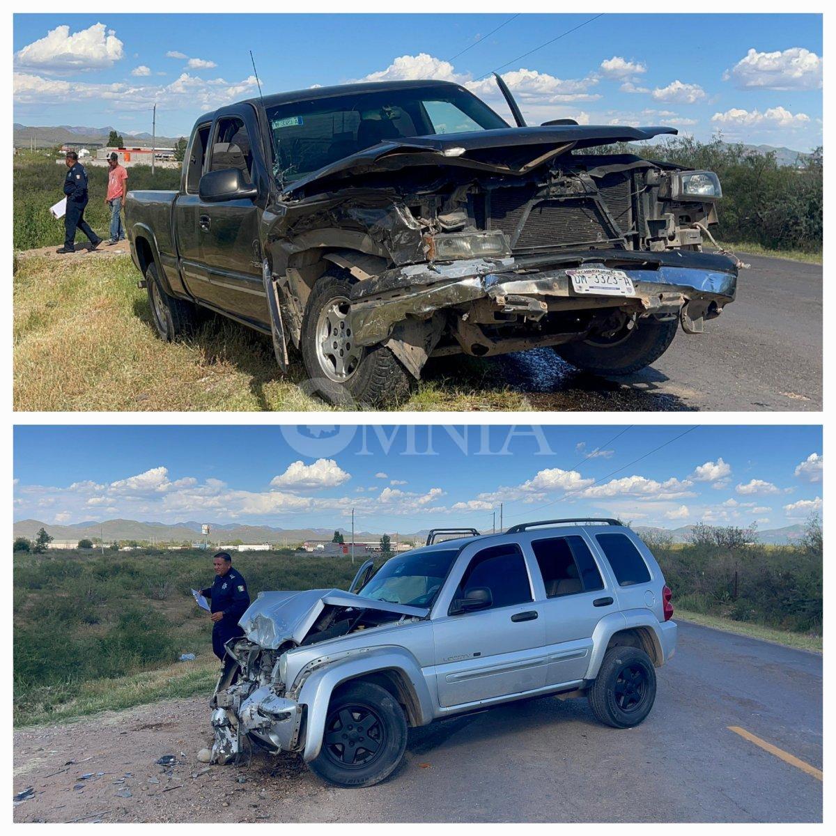 Esta tarde se registró un fuerte choque frontal en el camino que conduce hacia Majalca, luego de que el conductor de una camioneta Chevrolet pick-up invadiera el carril contrario e impactara de frente a un vehículo Jeep Liberty.