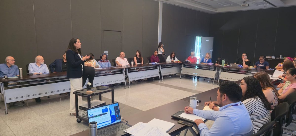 Durante la sesión ordinaria de dicho Programa, la Subsecretaria de Normatividad y Asuntos Jurídicos de la Secretaría General del Gobierno del Estado, Sahara Cárdenas, presentó los antecedentes y avances del trabajo realizado por esta dependencia en materia de desplazamientos.
