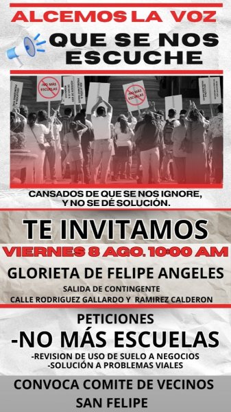 Se manifestarán vecinos de San Felipe; exigen cese a la construcción excesiva de escuelas - Convocan a marcha nacional para exigir a la 4T cumpla con medicamentos para niños con cáncer