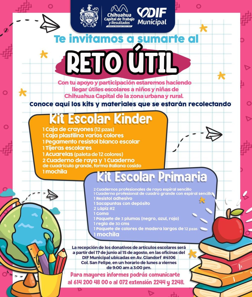 El Gobierno Municipal recuerda que esta es la última semana para participar en el programa “Reto Útil”, impulsado por el DIF Municipal, que busca reunir mochilas con útiles escolares para niñas y niños de preescolar y primaria en situación de vulnerabilidad, tanto en la ciudad como en la zona rural.