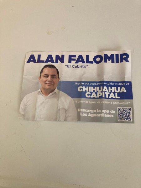 Los volantes muestran además de la imagen del funcionario, en letras más "grandes" el nombre de Alan Falomir y Chihuahua Capital.