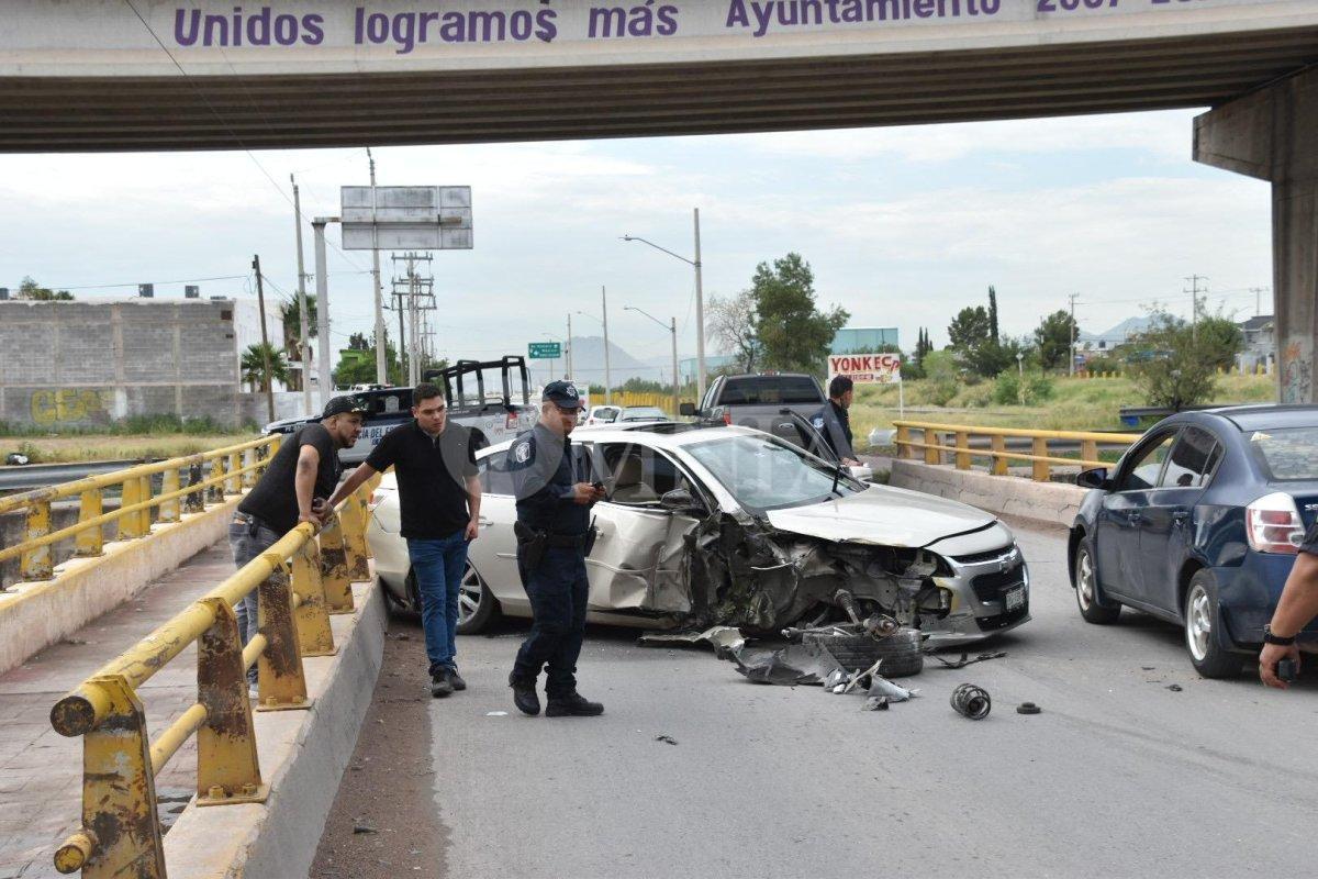 En la Vialidad Nogales, a la altura del cruce con la calle Venceremos, un automóvil Chevrolet Malibu protagonizó un fuerte accidente al impactar contra las barras de contención, lo que dejó daños totales en la unidad.
