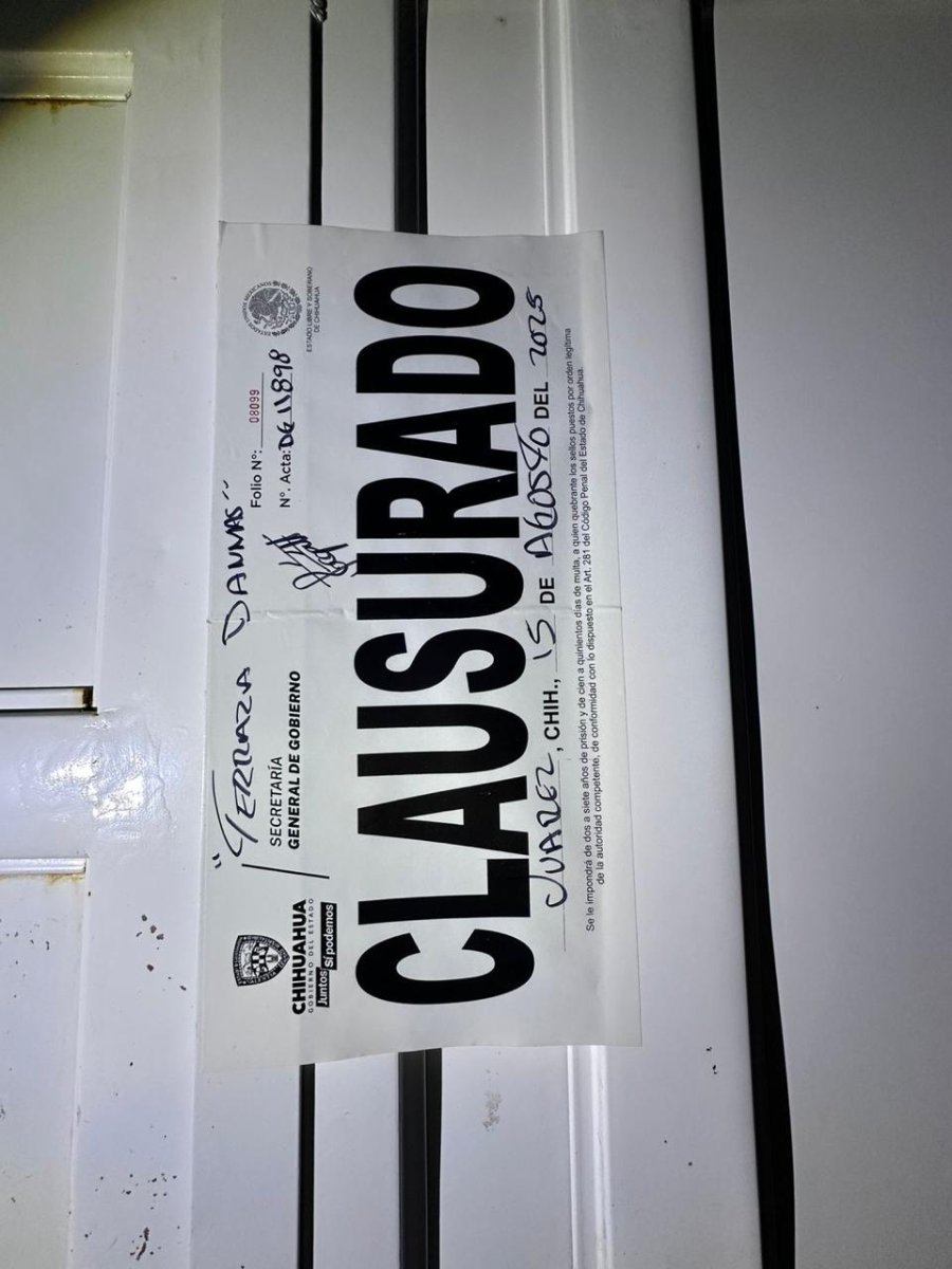 Estas acciones dieron como resultado un total de 19 clausuras, cuatro fueron en Chihuahua y quince en Ciudad Juárez.