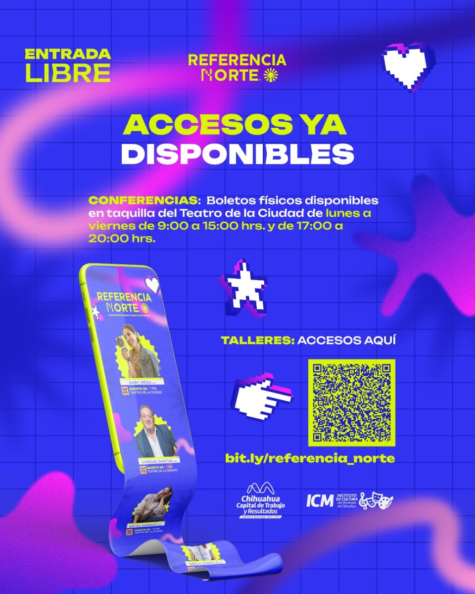 El Instituto de Cultura del Municipio, inició este lunes 25 de agosto la entrega de boletos gratuitos para las conferencias y talleres de Referencia Norte 2025, festival que se realizará del 28 al 30 de agosto y que reunirá a artistas, creadores, emprendedores e innovadores en una plataforma única de encuentro cultural.