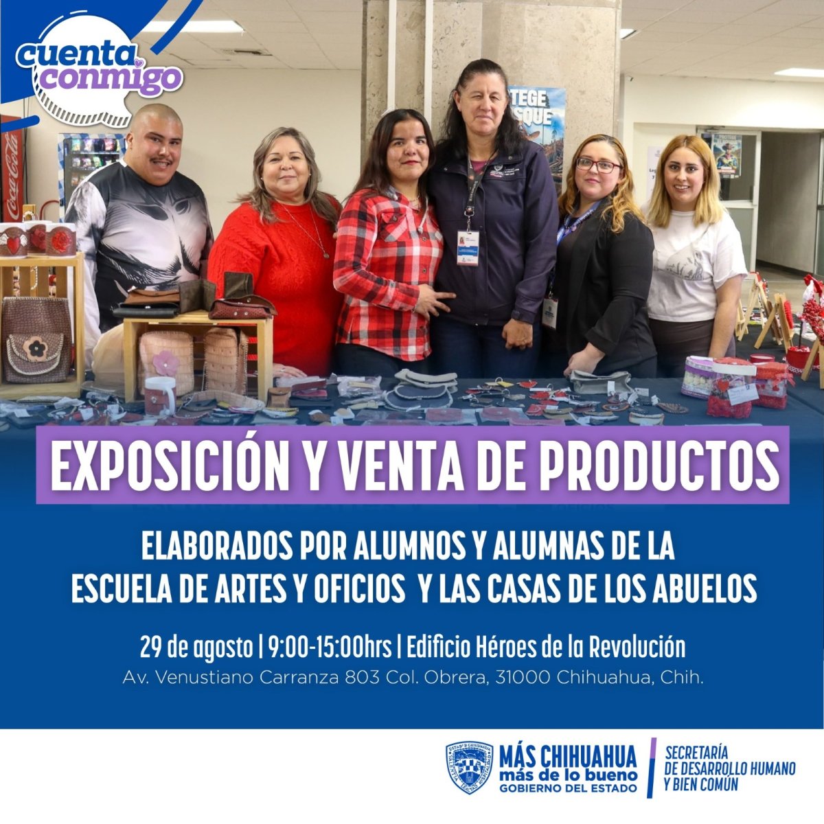 La Secretaría de Desarrollo Humano y Bien Común (SDHyBC) invita este viernes 29 de agosto a la gran exposición y venta de productos artesanales elaborados por integrantes de la Escuela de Artes y Oficios (EAO), con el objetivo de impulsar su talento y fomentar el autoempleo.