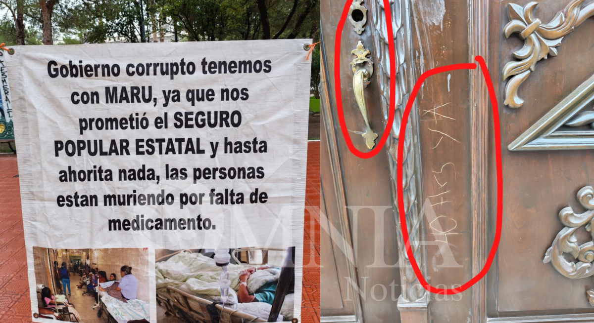 Vandalismo y mantas aparecen en Palacio de Gobierno