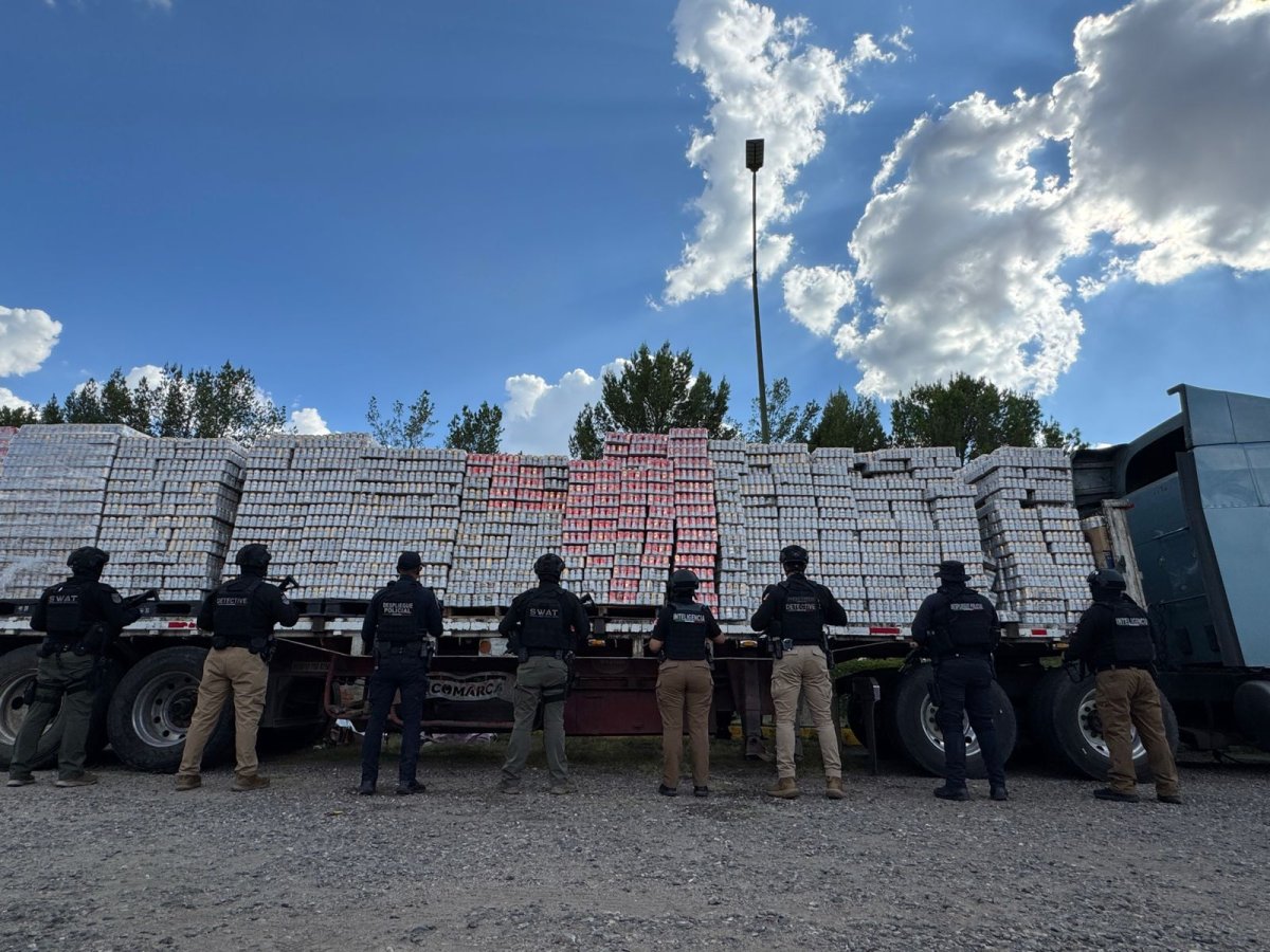 El vehículo, marca Peterbilt modelo 2016 en color azul, circulaba a la altura del poblado La Catedral, en el municipio de Parral, cuando fue detectado durante las labores de patrullaje. En la inspección se localizó la carga sin la documentación necesaria para su traslado.