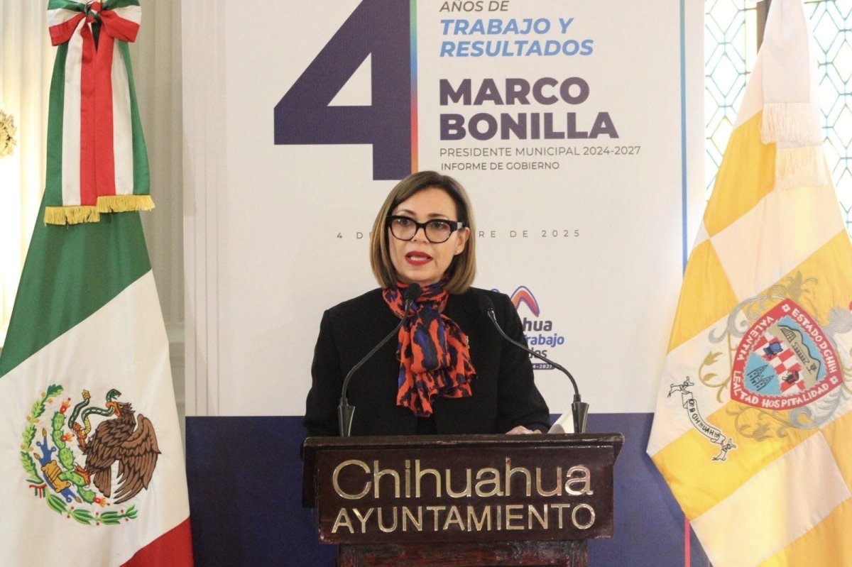 La Fracción Edilicia del Partido Acción Nacional del H. Ayuntamiento de Chihuahua presentó su posicionamiento político respecto al 4to.  Informe de Gobierno del Alcalde Marco Bonilla correspondiente a la administración Municipal 2024-2027, en voz de la Coordinadora Isela Martínez Díaz.
