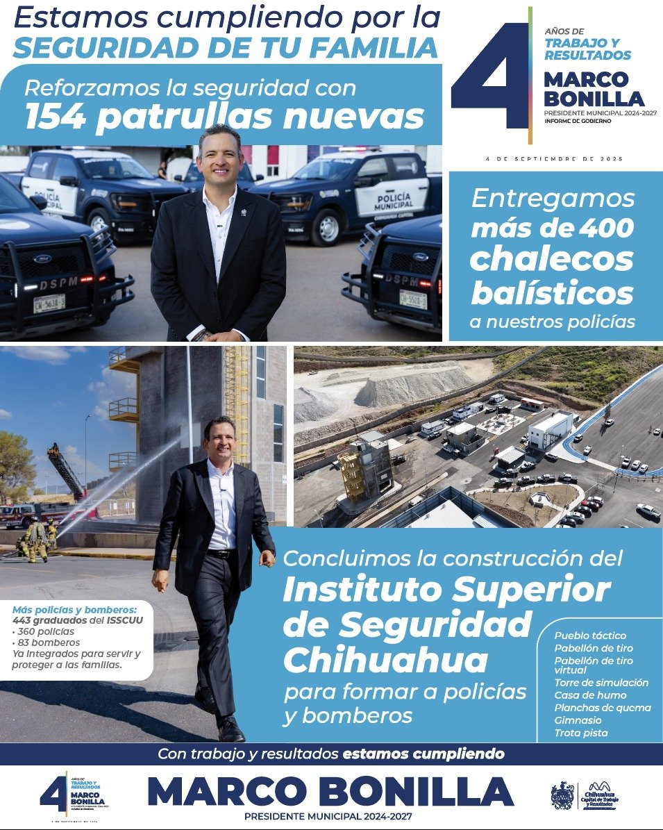4° INFORME Chihuahua Capital más segura: tecnología, equipamiento y proximidad para cuidar a las familias