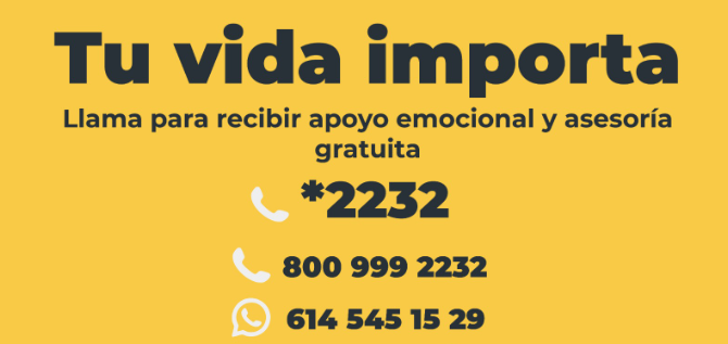 Por último, exhortaron a la ciudadanía que se encuentre pasando por alguna situación vulnerable de este tipo acudir con profesionales e informaron que, la manera mas sencilla para acceder es por medio de las marcaciones *2232, el 800 999 2232 y al whatsapp 614 545 15 29.