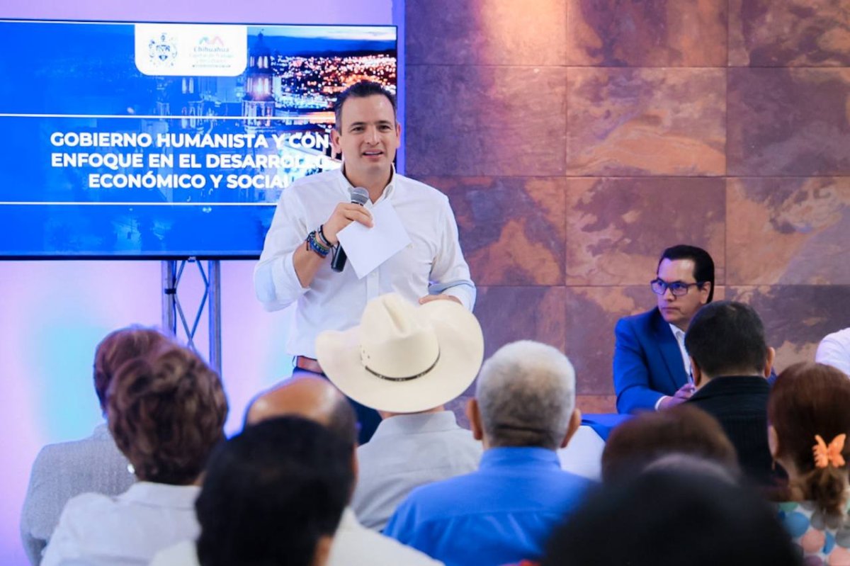 El alcalde de Chihuahua, Marco Bonilla, expuso ante representantes de diversos sectores como el empresarial, así con Club Rotarios y Club de Leones del municipio de Nuevo Casas Grandes, donde les expuso las acciones que realiza desde el gobierno que encabeza con un enfoque económico, social y humanista.