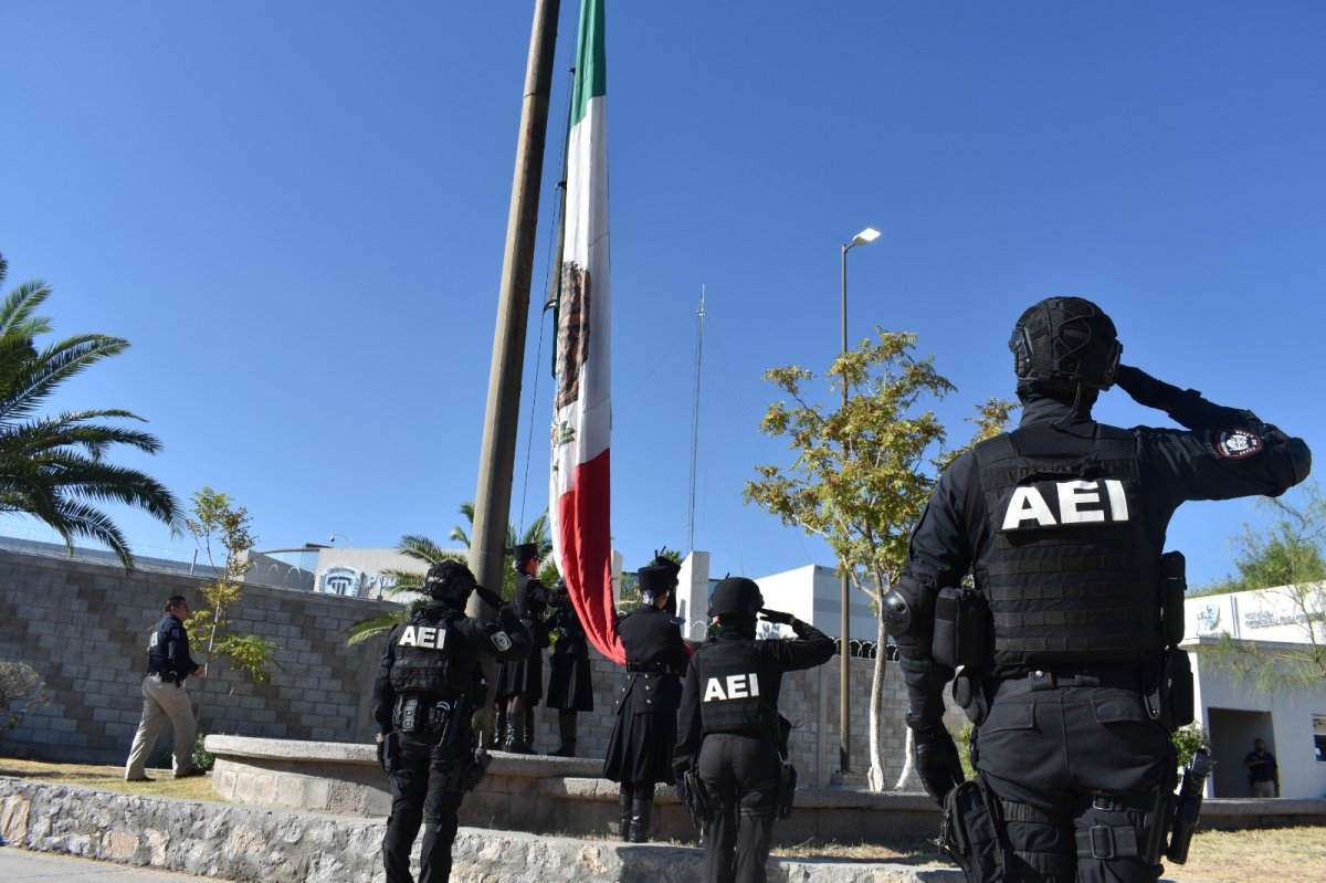 En representación del Fiscal de Distrito, Carlos Manuel Salas, los honores a la bandera fueron encabezados por el coordinador de la Unidad de Delitos Contra la Vida, Hugo Sígala, evento en el que se contó con la participación especial de la Escolta y Banda de Guerra del CBTIS 114 y elementos del Grupo de Operaciones Tácticas.