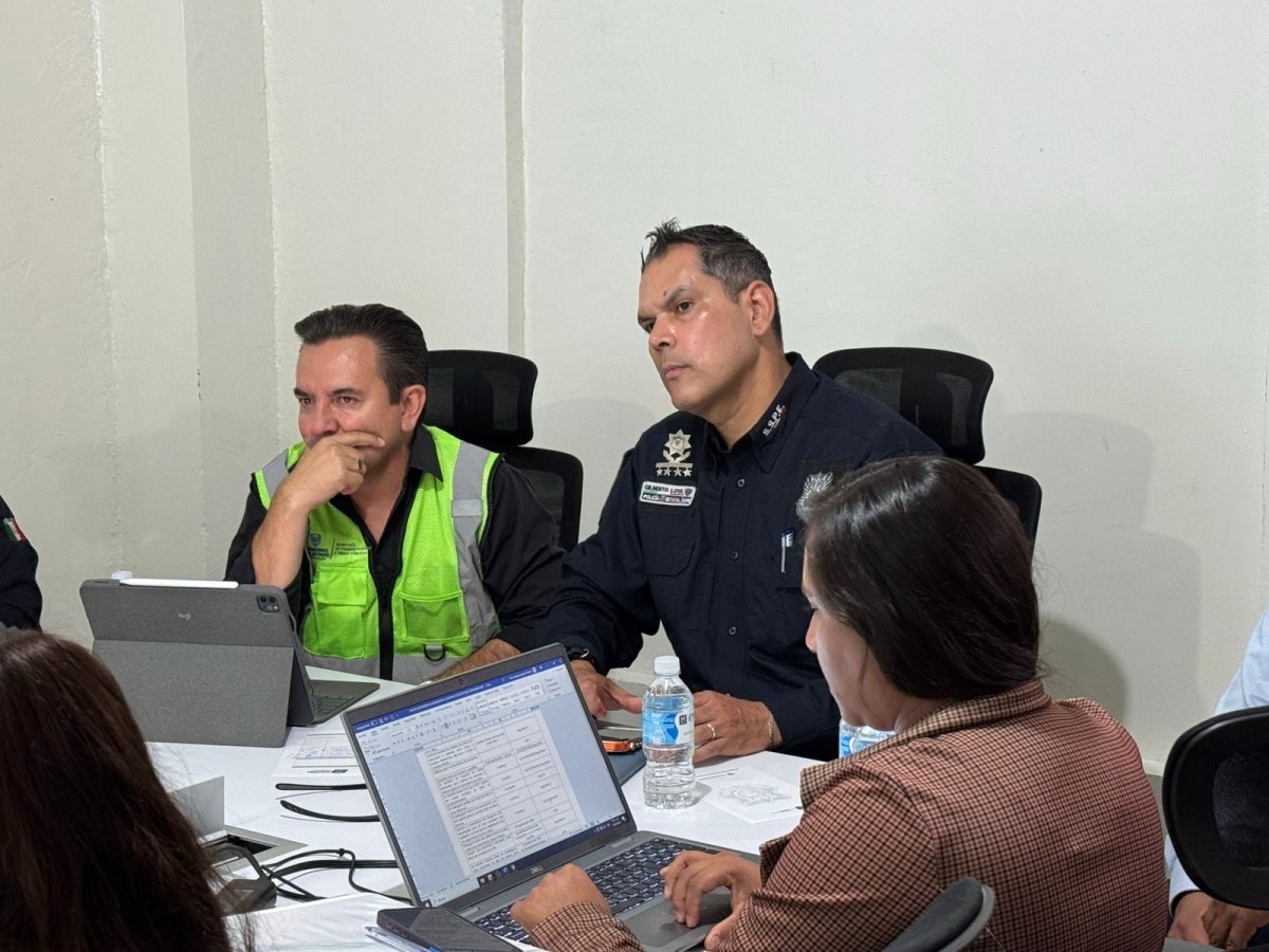 El secretario de Seguridad Pública del Estado, Gilberto Loya, encabezó este jueves una reunión de trabajo en la Torre del Centro de Mando, donde participaron el titular de Comunicaciones y Obras Públicas, Jorge Chanez, y el secretario de la Función Pública, Roberto Fierro.