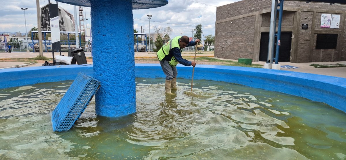 El Gobierno Municipal, a través de la Dirección de Mantenimiento Urbano, atiende de manera continua las 17 fuentes públicas de Chihuahua Capital, para conservar una buena imagen urbana en los espacios públicos de la ciudad para las familias chihuahuenses.
