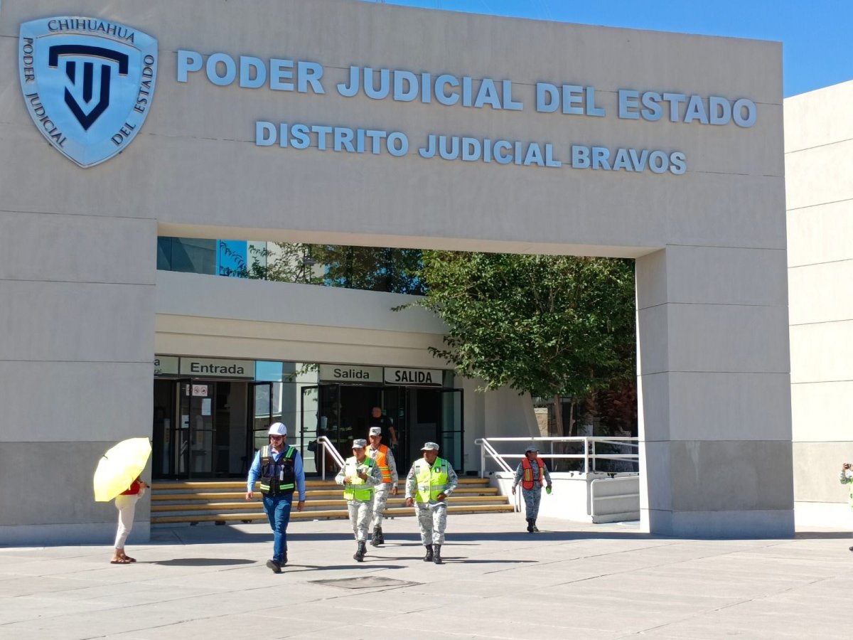 En el marco del Día Nacional de Protección Civil, el Poder Judicial del Estado de Chihuahua llevó a cabo un ejercicio preventivo de evacuación por sismo en cuatro de los cinco edificios del Distrito Judicial Bravos, con la participación coordinada de magistradas, magistrados, jueces, juezas, secretarios, personal administrativo y cuerpos de seguridad pública municipal, estatal y federal.