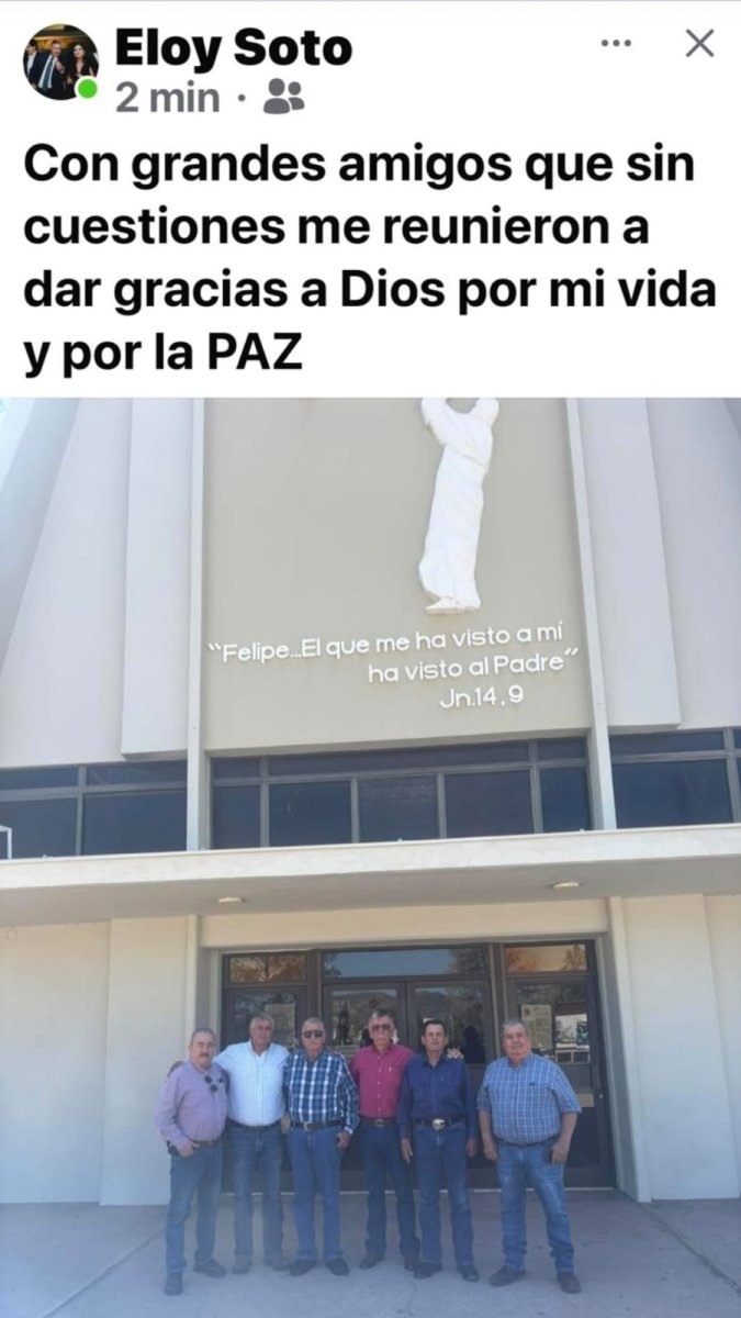 Tras el atentado ocurrido recientemente, en el que resultaron heridos los abogados Héctor Villasana y Enrique Muñoz, presuntamente atacados por Francisco “El Chino”, Eloy Soto se reunió con un grupo de amigos para agradecer a Dios por su vida y por la paz.
