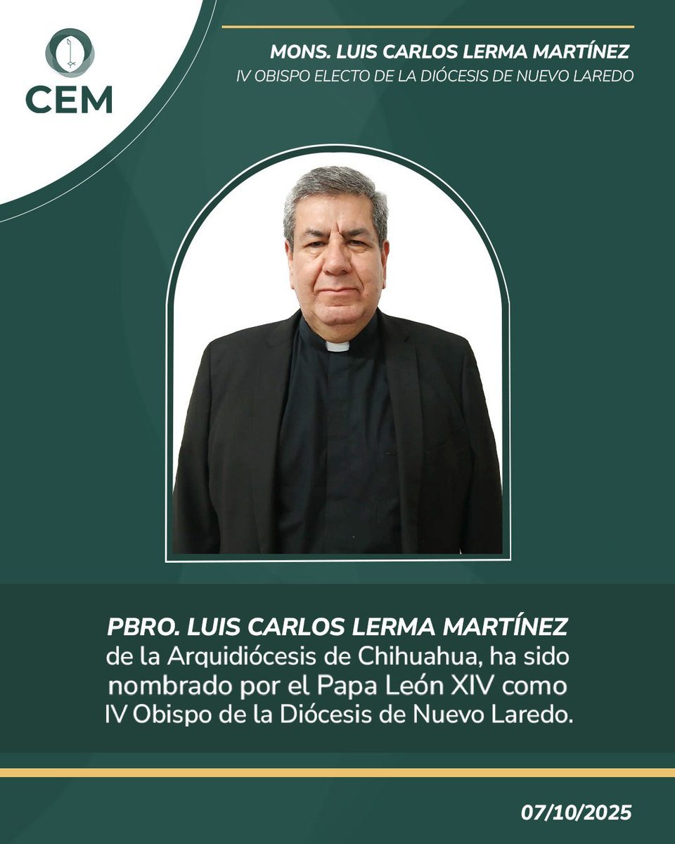 La Nunciatura Apostólica comunicó a través de la Secretaría General de la Conferencia del Episcopado Mexicano, que el Papa León XIV ha dignado nombrar Obispo de la Diócesis de Nuevo Laredo.