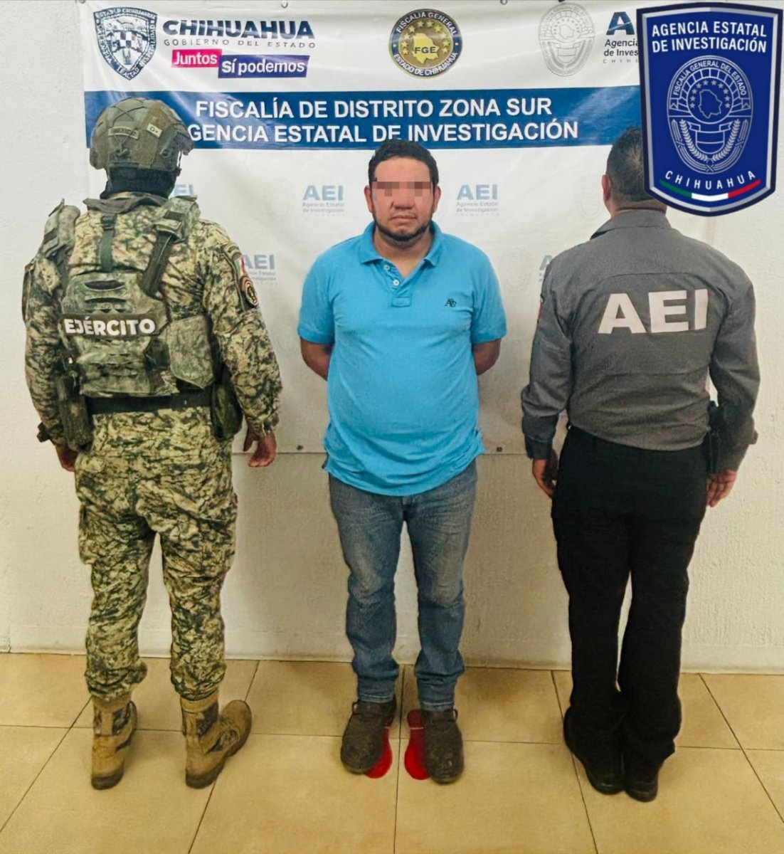 Elementos de la Agencia Estatal de Investigación (AEI) adscritos a la Fiscalía de Distrito Zona Sur, en conjunto con miembros del Ejército Mexicano, detuvieron a un masculino de nombre Melchor Alberto R. D., quien contaba con una orden de aprehensión por el delito de violación con penalidad agravada.