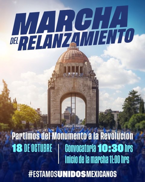 Se invita a los panistas y personas afines a este partido a marchar este 18 de octubre, a las 10:30 a.m., en el Monumento a la Revolución, rumbo al Ángel de la Independencia.
