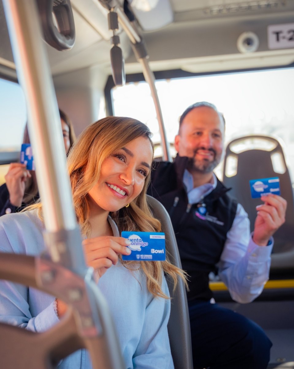 La directora general del Instituto Chihuahuense de la Juventud, Fernanda Jazmín Martínez Quintero y el secretario General de Gobierno, Santiago De la Peña Grajeda, junto a estudiantes universitarios realizaron un recorrido en las nuevas unidades del transporte público Bowí.