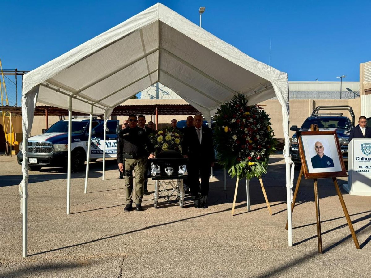 La Secretaría de Seguridad Pública del Estado (SSPE) llevó a cabo una ceremonia fúnebre en memoria de Gerardo Rubio Gallegos, quien formaba parte del equipo de trabajo del Centro de Reinserción Social Estatal No. 4, en Hidalgo del Parral.
