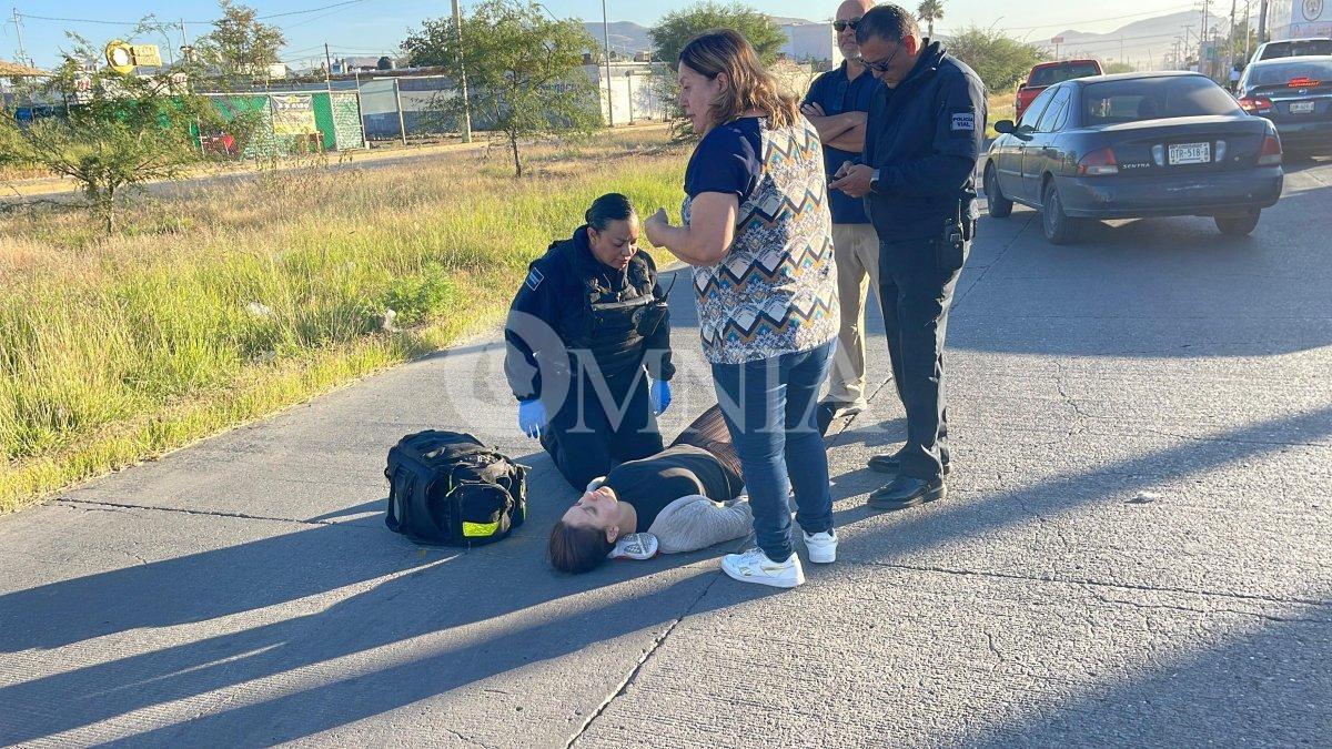Paramédicos de la Dirección de Seguridad Pública Municipal acudieron como primeros respondientes y brindaron atención a una mujer que fue arrollada.