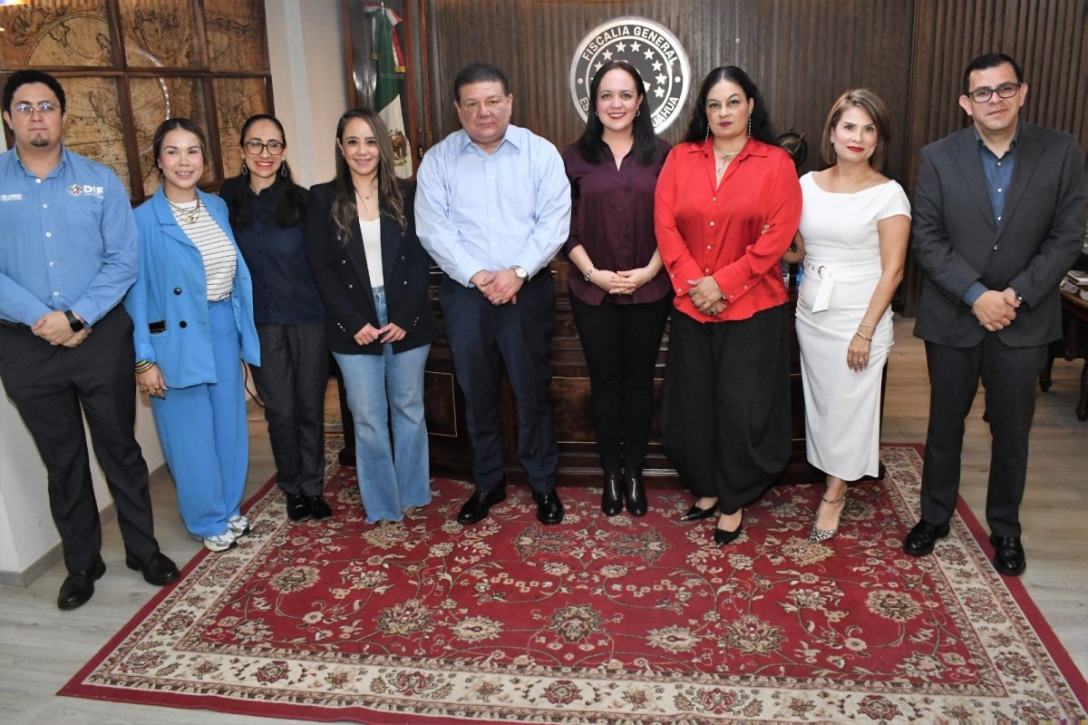 Representantes del Sistema Estatal de Protección Integral de Niñas, Niños y Adolescentes (SIPINNA), la Procuraduría de Protección de Niñas, Niños y Adolescentes (PPNNA) y diversas áreas de la Fiscalía General del Estado (FGE), sostuvieron una reunión con el Fiscal General del Estado, César Jáuregui Moreno, para presentarle los resultados del pilotaje de la Ruta de Atención a NNA Víctimas de la Comisión de Delito.