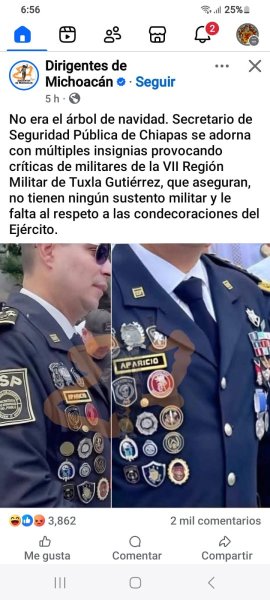 El secretario de Seguridad Pública de Chiapas, José Aparicio, antes jefe policiaco con Javier Corral, volvió a ser noticia, pero no por su trabajo, sino por su uniforme saturado de insignias. Militares de la VII Región en Tuxtla Gutiérrez señalaron que muchas carecen de sustento, considerándolo una falta de respeto a las condecoraciones reales del Ejército.