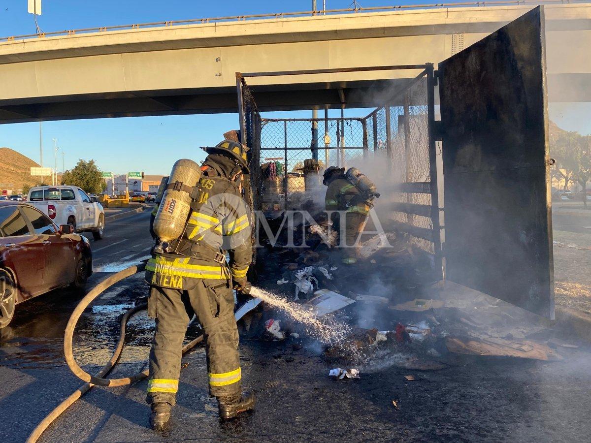 Esta tarde se registró el incendio de una traila que transportaba una gran cantidad de cartón y plásticos reciclables, perteneciente a la empresa Ruta Servicios Integrales.