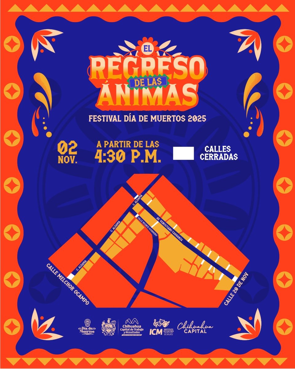 Con motivo del desfile por el Día de Muertos y el festival "El Regreso de las Animas" en el Centro Histórico de la Capital, el Gobierno Municipal a través del Instituto Municipal de Cultura informa sobre los cierres viales que se realizarán este 2 de noviembre, para que conductores tomen precauciones y planifiquen sus rutas.