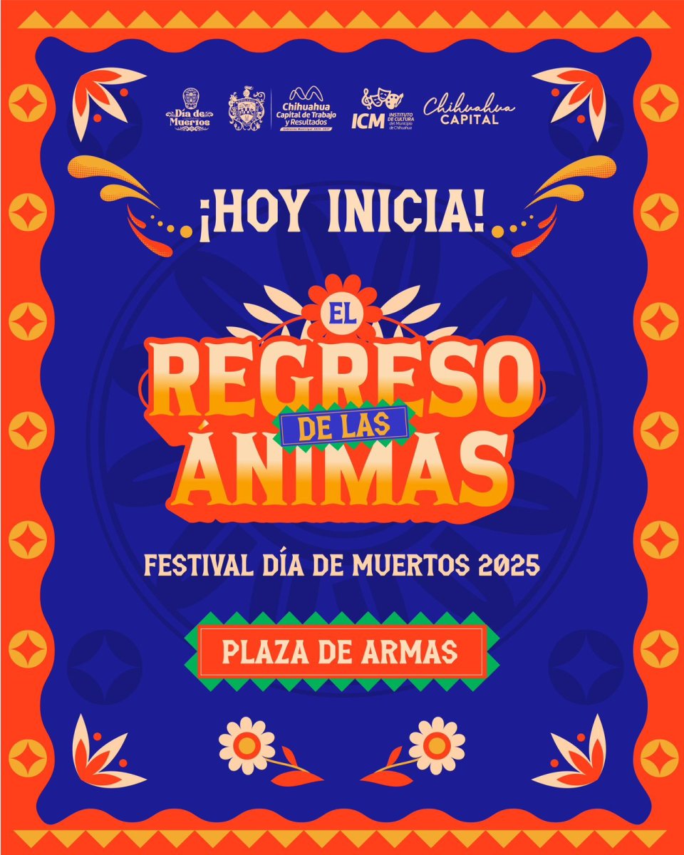 El Gobierno Municipal de Chihuahua, a través del Instituto de Cultura, inicia hoy al Festival de Día de Muertos 2025 “El Regreso de las Ánimas”, una de las celebraciones más esperadas por las familias chihuahuenses, que llenará la Plaza de Armas de color, arte y tradición.