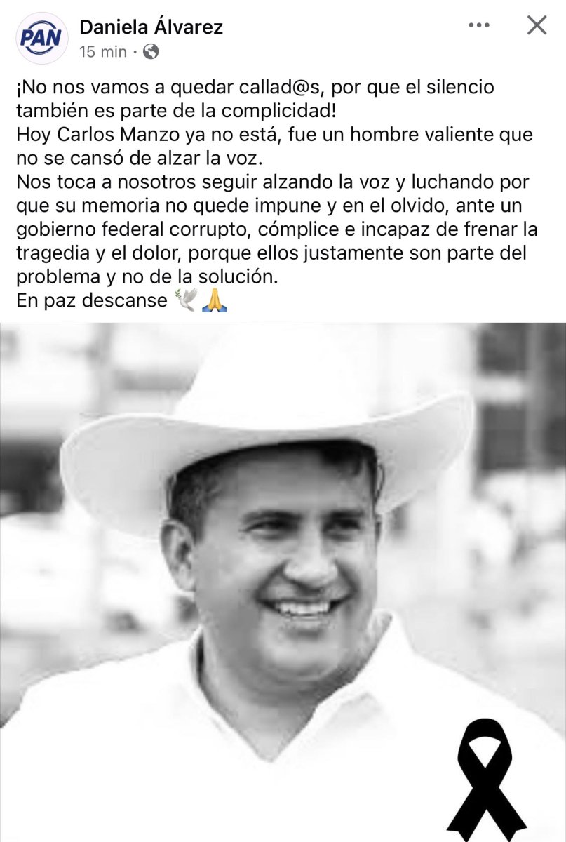 La Presidenta Estatal de Acción Nacional (PAN), Daniela Álvarez, a través de sus redes sociales, lamentó el fallecimiento del alcalde de Uruapan, destacando que fue un hombre valiente que no se cansó de alzar la voz.