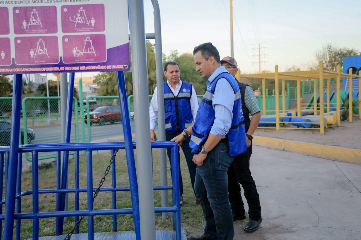 Con el propósito de garantizar que las familias chihuahuenses cuenten con espacios públicos limpios, seguros y en óptimas condiciones, el alcalde Marco Bonilla realizó un recorrido de supervisión por los parques Aventura, ubicado en la avenida La Cantera, y El Palomar.