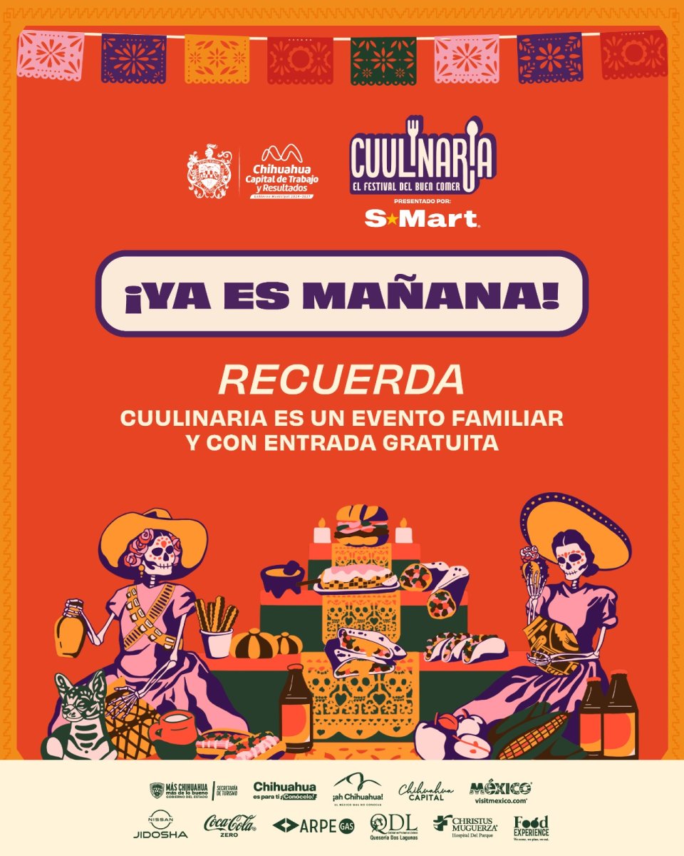 El Gobierno Municipal de Chihuahua, recuerda que este 8 y 9 de noviembre se llevará a cabo Cuulinaria, el Festival del Buen Comer, la celebración gastronómica más grande de la ciudad en las instalaciones de Parque El Reliz.