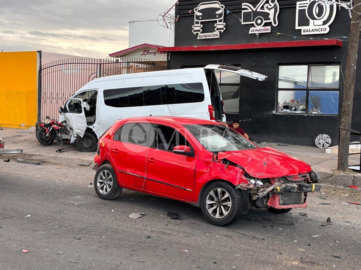 El golpe proyectó a la Nissan contra la banqueta de un negocio, donde dañó un ventanal y alcanzó a dos motocicletas estacionadas.