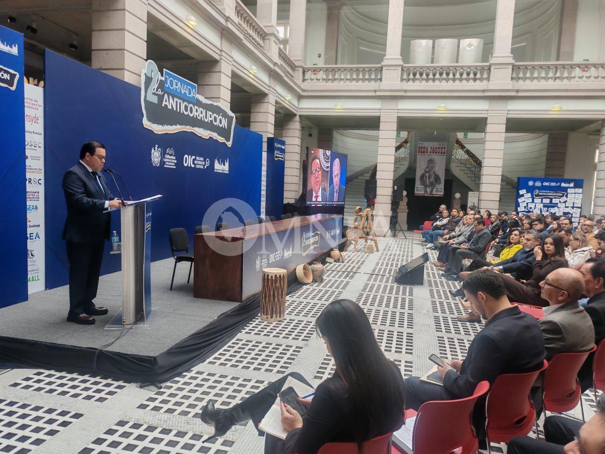 Sin mencionar el nombre del ex gobernador como imputado en el presunto peculado de 98.6 millones de pesos. Indicó entre los ejemplos de combate a la corrupción este caso que denunció que se pretende llevar con influencias políticas, obsediendo que son recursos federales cuando es falso y los jueces dan la razón a Chihuahua.